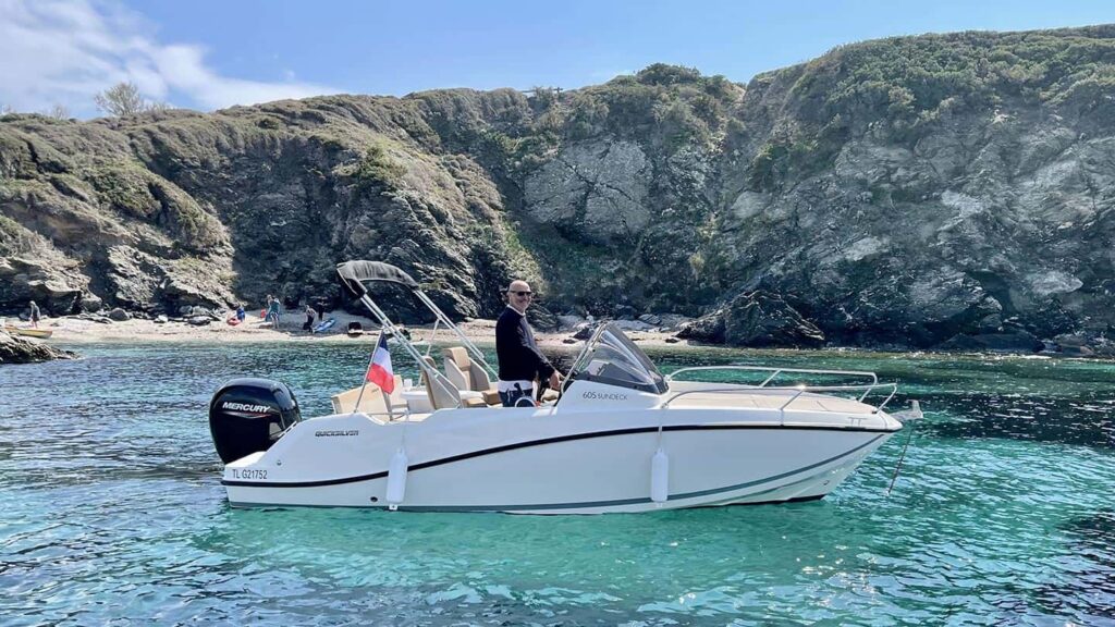 Equipement : Dernier né de la génération QUICKSILVER, son large bain de soleil à l’avant et son confort de navigation sauront vous faire passer une journée inoubliable. Guindeau électrique, douchette, Radio FUSION, taud de soleil…